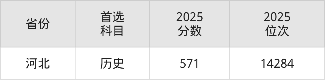 历史类最低分对应地区为河北,录取位次为14284,超本科线94分。