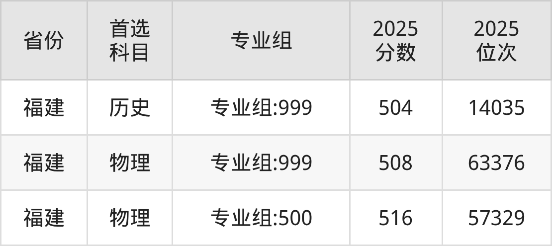 物理类最低分对应地区为福建(专业组:999),录取位次为63376,超本科线67分;最高分对应地区为福建(专业组:500),录取位次为57329,超本科线75分。