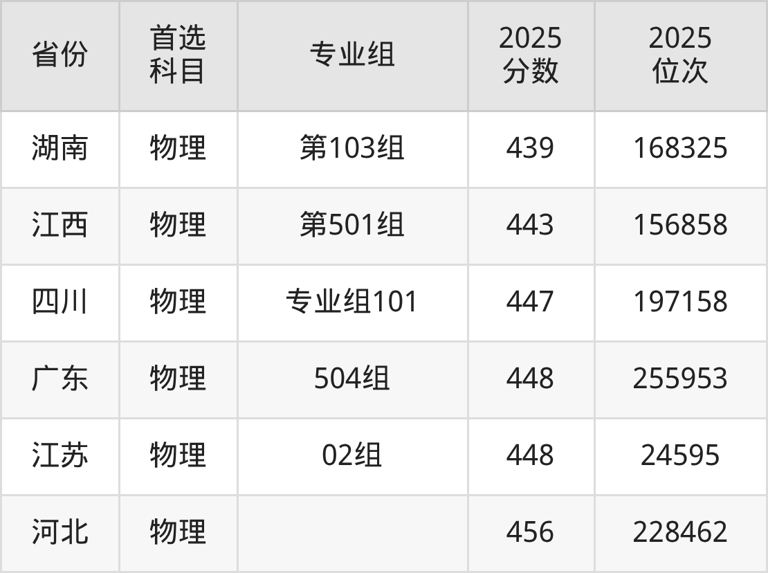 物理类:第103组429分、181103名,第204组(中外合作)416分、197284名;