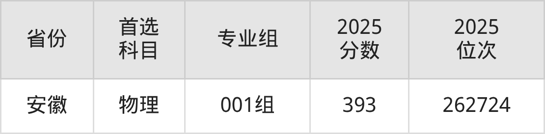 物理类最低分对应地区为四川(专业组101),录取位次为284789;最高分对应地区为安徽(001组),录取位次为262724,超专科线193分。