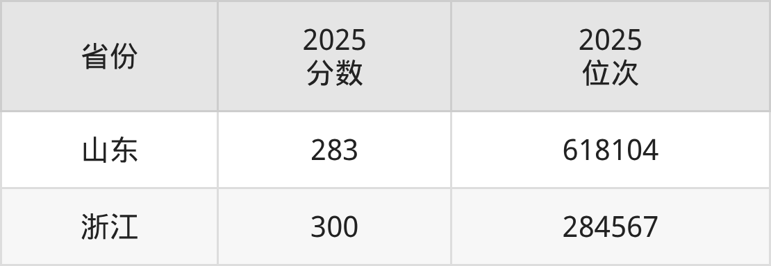 最低分对应地区为山东,录取位次为618104,超二段线133分;最高分对应地区为浙江,录取位次为284567,超二段线32分。
