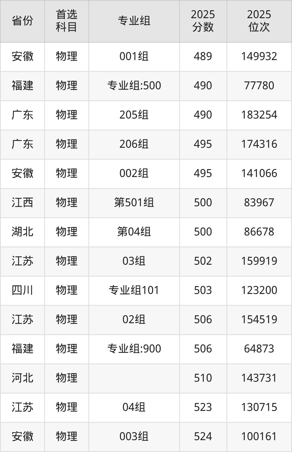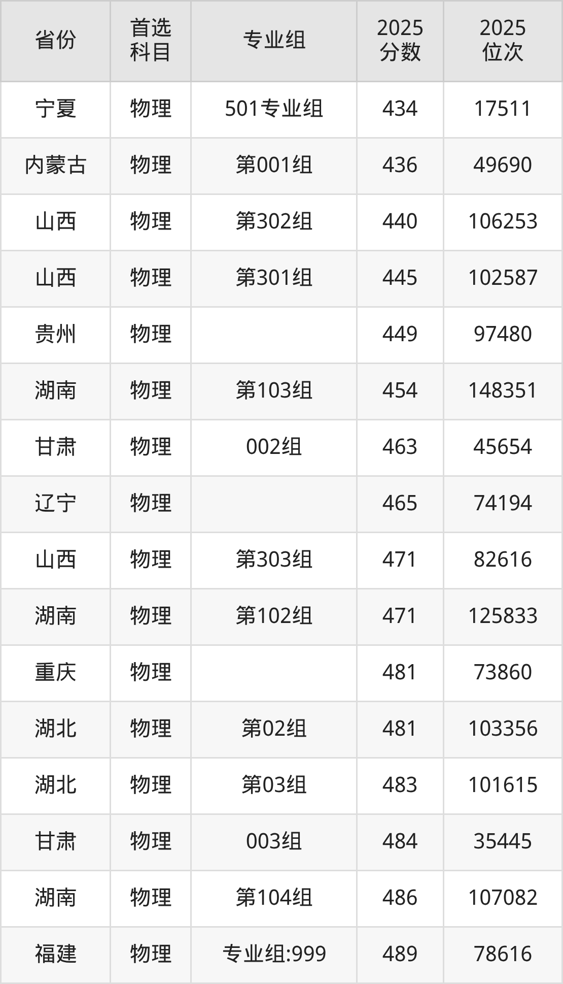 物理类:第301组445分、102587名,第302组440分、106253名,第303组471分、82616名;