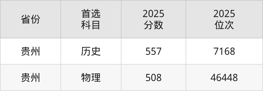 历史类最低分对应地区为贵州,录取位次为7168,超本科线99分。