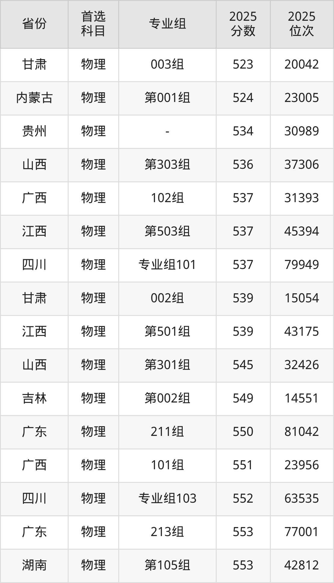 物理类:512分、53904名,520分、49340名;