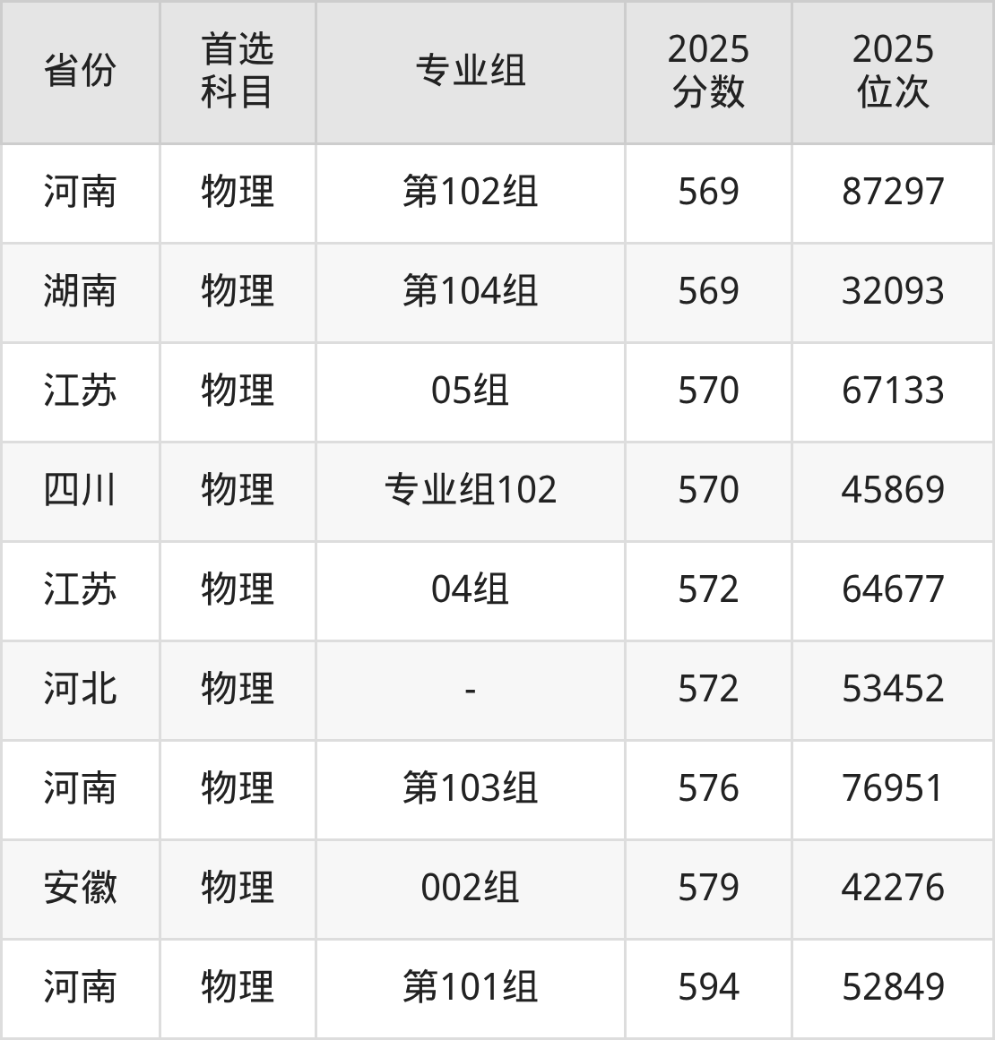 物理类最低分对应地区为宁夏(503专业组),录取位次为7060,超本科B129分;最高分对应地区为河南(第101组),录取位次为52849,超本科线167分。