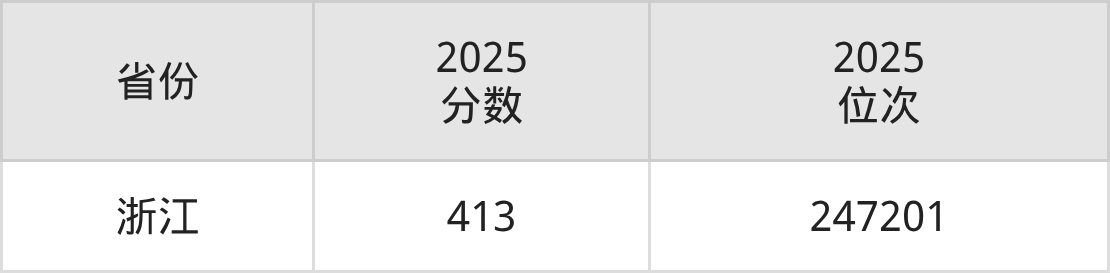 最低分对应地区为浙江,录取位次为247201,超二段线145分。