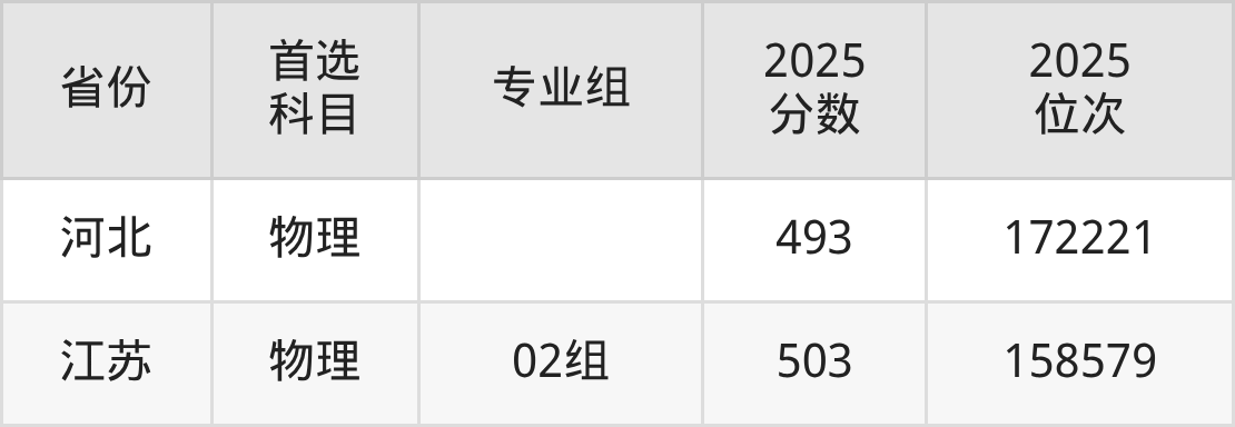 物理类最低分对应地区为黑龙江(第001组),录取位次为69373,超本科线41分;最高分对应地区为江苏(02组),录取位次为158579。