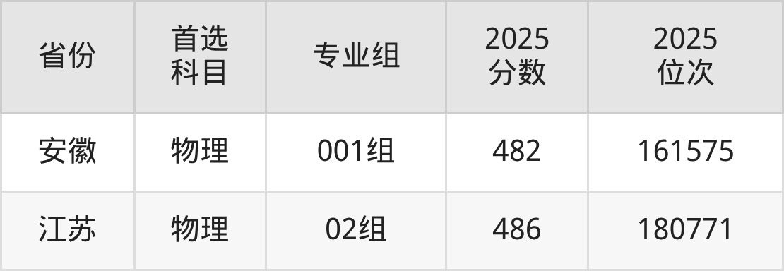 物理类最低分对应地区为吉林(第002组),录取位次为67278,超本科线11分;最高分对应地区为江苏(02组),录取位次为180771,超本科线23分。