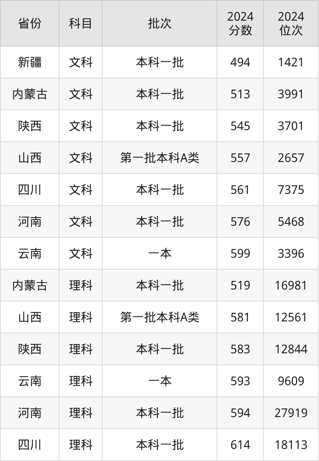本科一批:文科564分、4767名,理科580分、24602名;