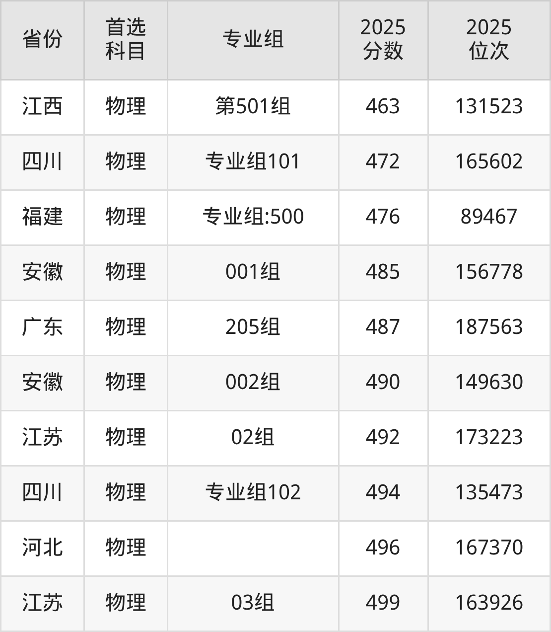 物理类:350分、326609名,496分、167370名;