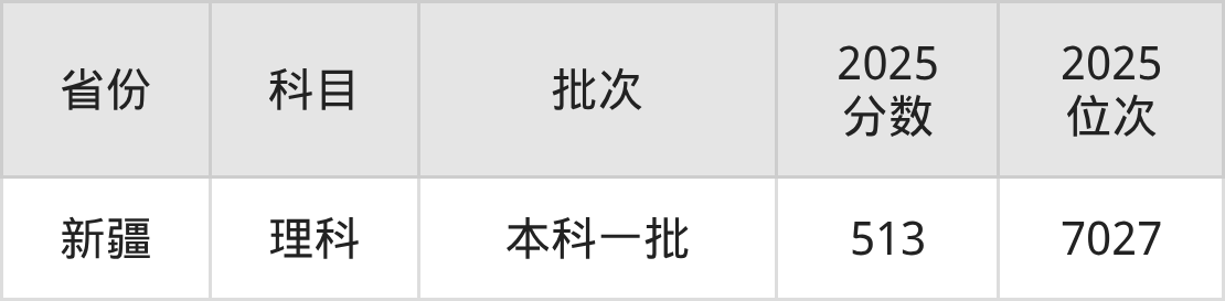 理科最低分对应地区为新疆,录取位次为7027,超一本线92分。
