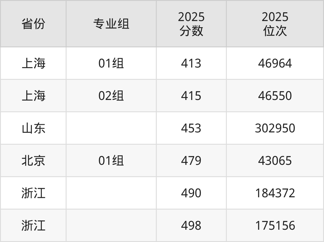最低分对应地区为上海(01组),录取位次为46964,超本科线11分;最高分对应地区为浙江,录取位次为175156。