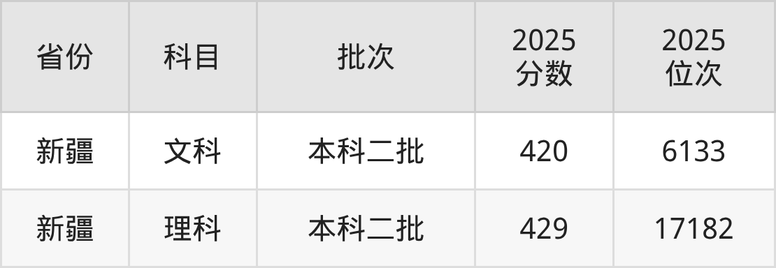 文科最低分对应地区为新疆,录取位次为6133。
