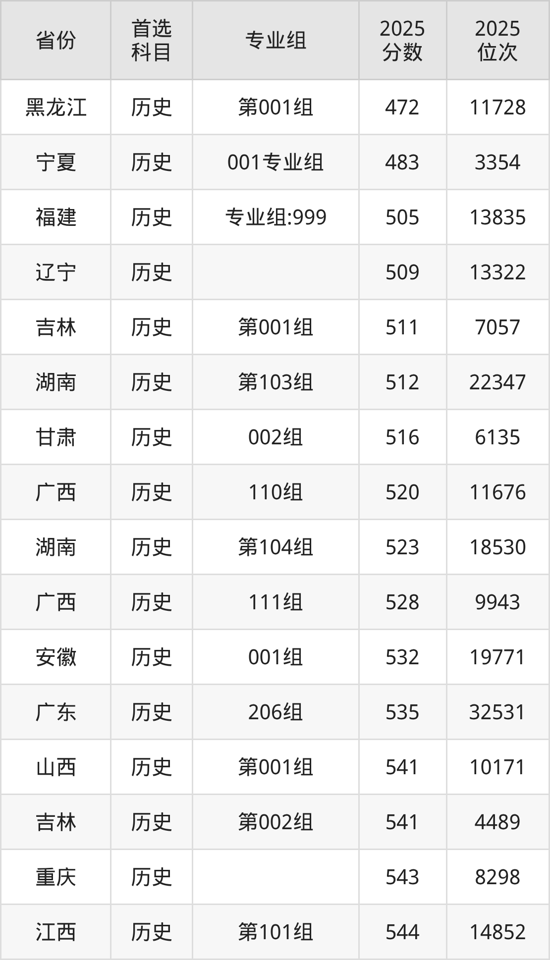 历史类:第001组495分、7759名,第002组523分、5183名;