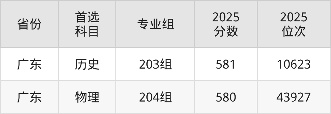 物理类最低分对应地区为广东(204组),录取位次为43927,超本科线144分。