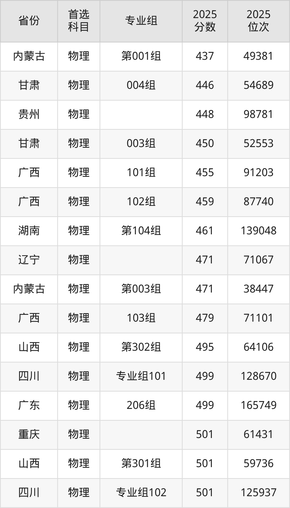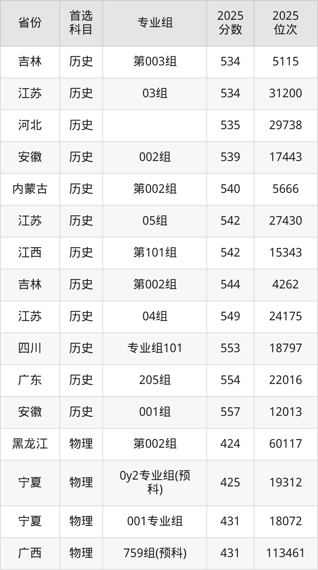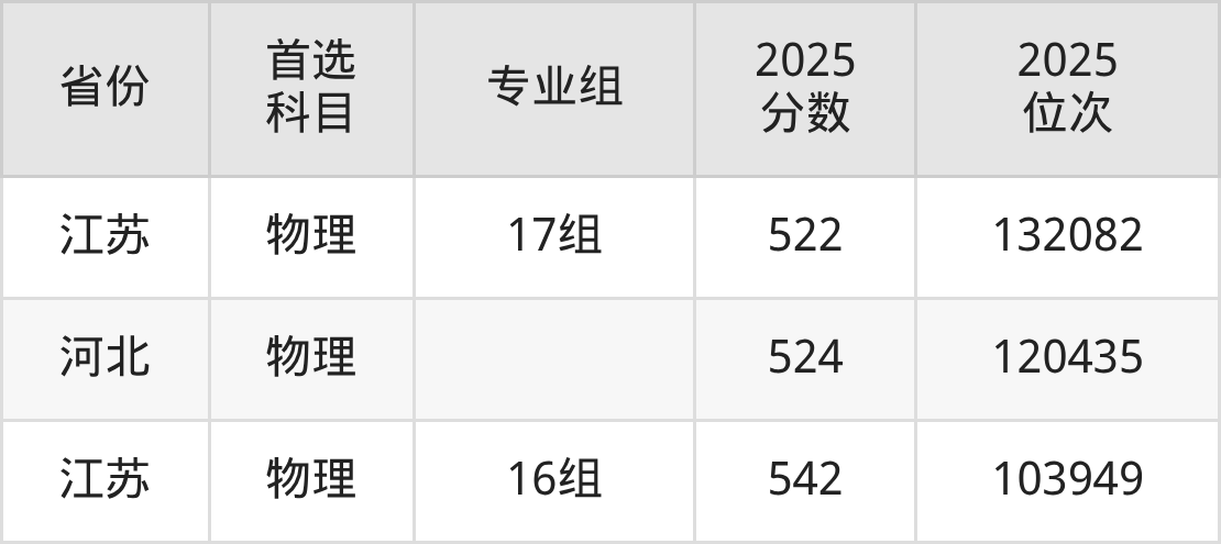 物理类:10组515分、124309名,11组509分、132150名,12组(联合培养)508分、133497名,13组502分、141247名,14组499分、145119名,15组508分、133497名,16组521分、116478名,17组539分、93433名,18组524分、112672名;