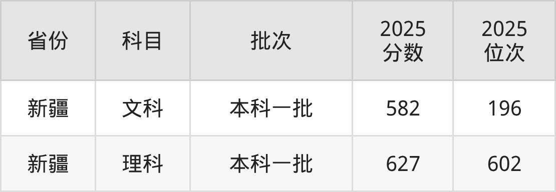 理科最低分对应地区为新疆,录取位次为602,超一本线206分。