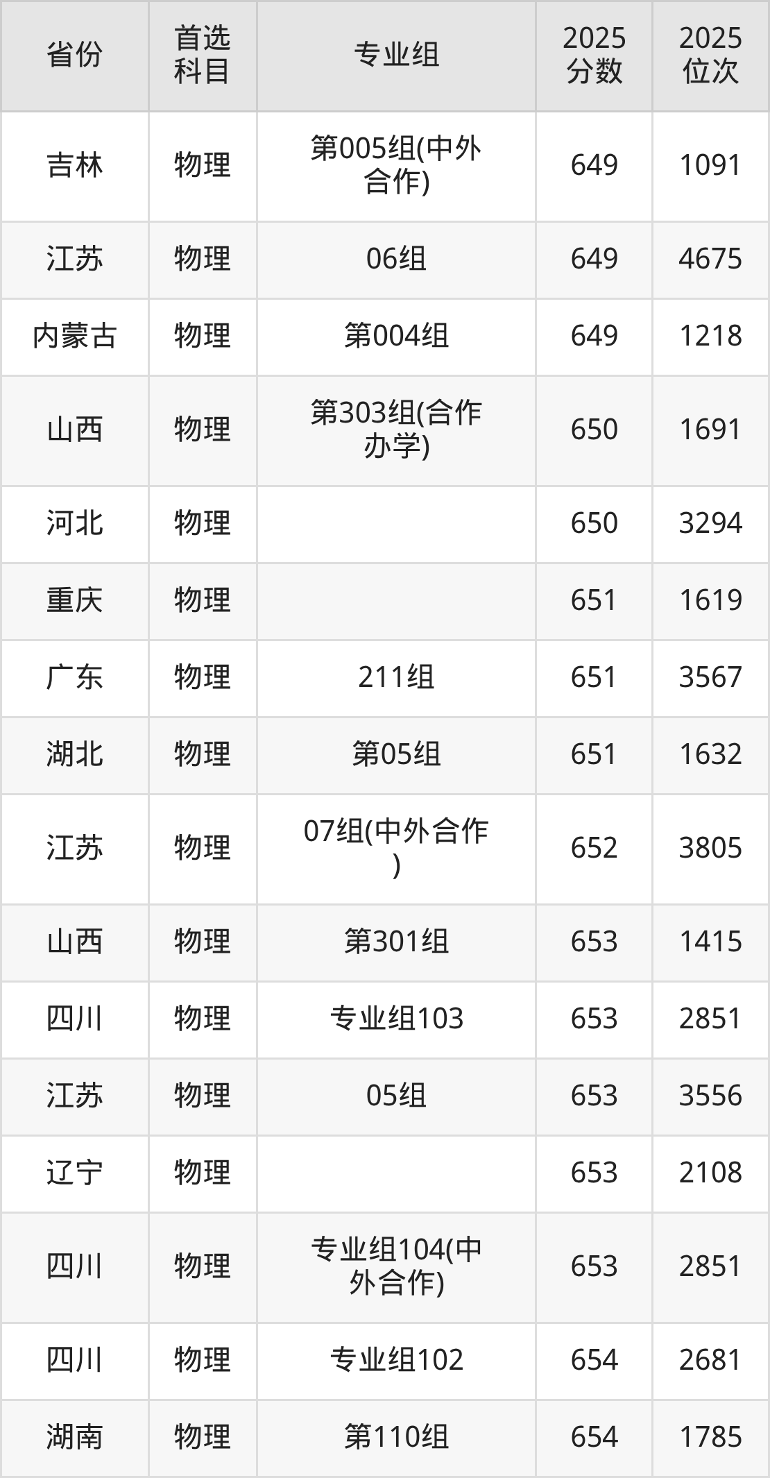 三、同济大学2025录取分数线