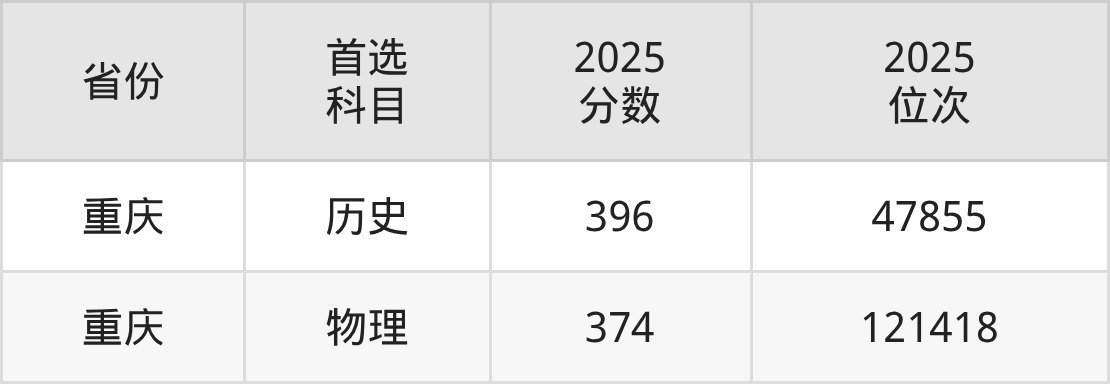 历史类最低分对应地区为重庆,录取位次为47855,超专科线216分。