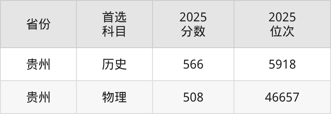 2025年贵州大学(地方专项计划)在新高考3+1+2地区的录取分数线为:历史类566分、物理类508分。