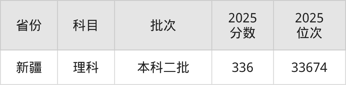 理科最低分对应地区为新疆,录取位次为33674,超二本线56分。
