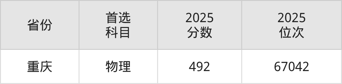 物理类最低分对应地区为重庆,录取位次为67042,超本科线67分。