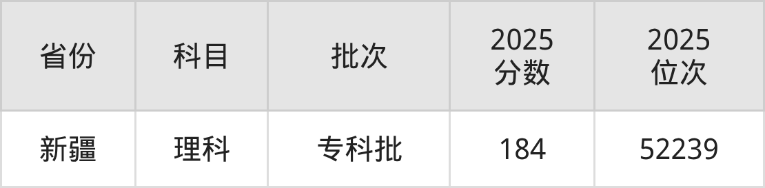 理科最低分对应地区为新疆,录取位次为52239,超专科线44分。