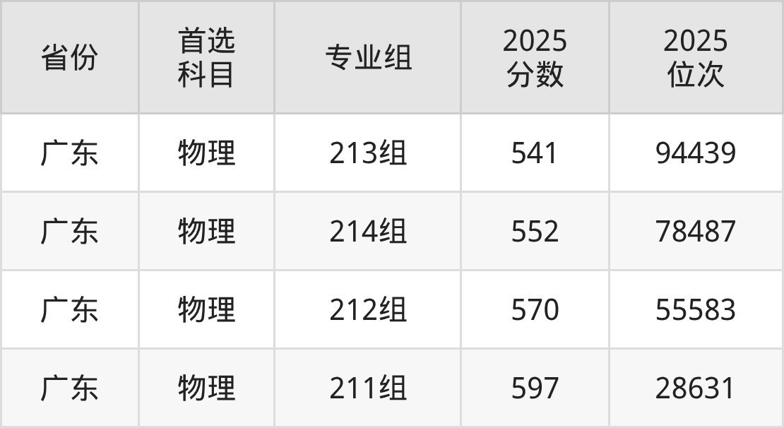 物理类最低分对应地区为广东(213组),录取位次为94439,超本科线105分;最高分对应地区为广东(211组),录取位次为28631,超本科线161分。