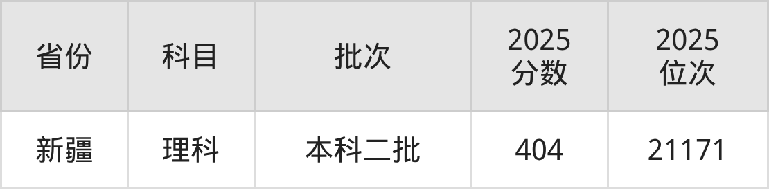 理科最低分对应地区为新疆,录取位次为21171,超二本线124分。