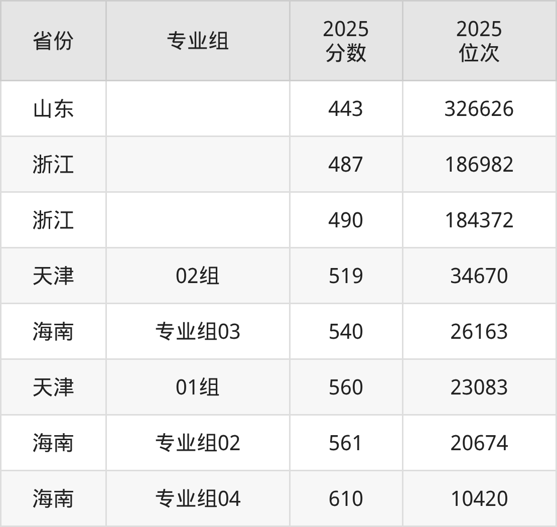 最低分对应地区为山东,录取位次为326626,超一段线59分;最高分对应地区为海南(专业组04),录取位次为10420。