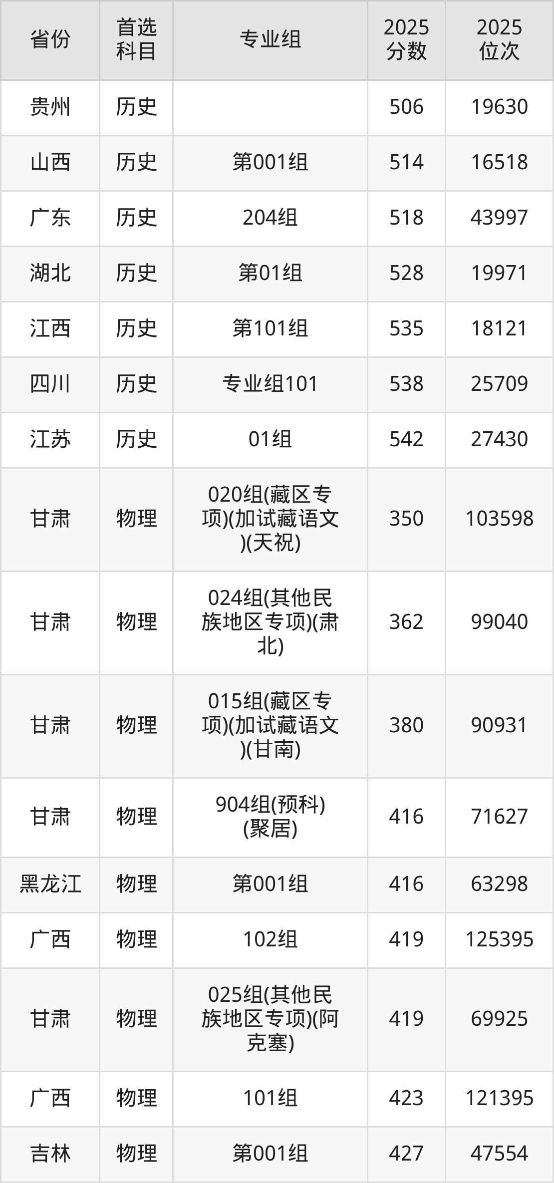 为了方便各地区考生们查看甘肃农业大学的录取情况,本文也整理出2025年甘肃农业大学在全国各省的录取分数线,供参考。