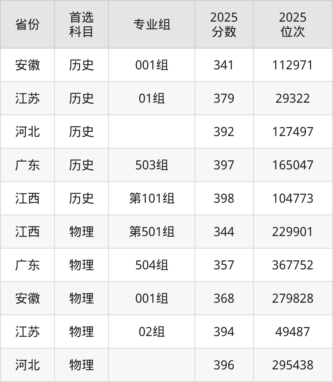 历史类:001组282分、120392名;
