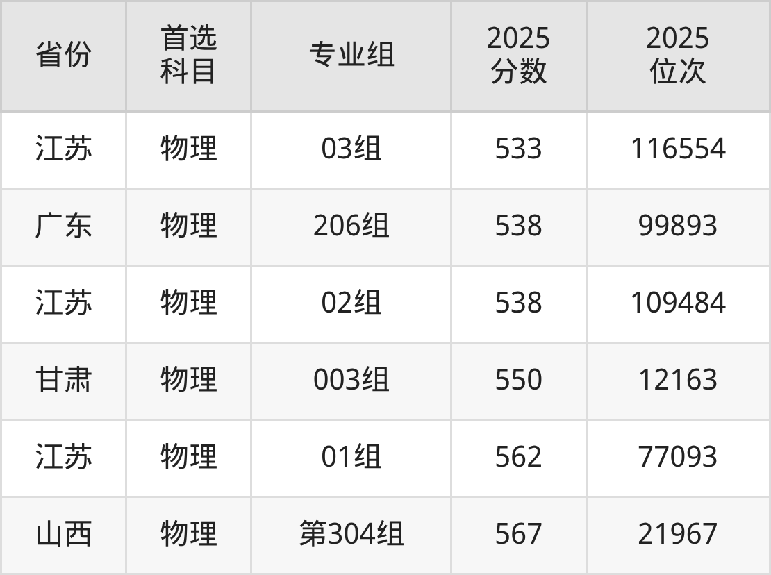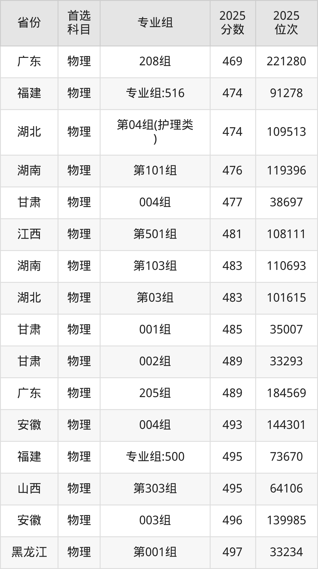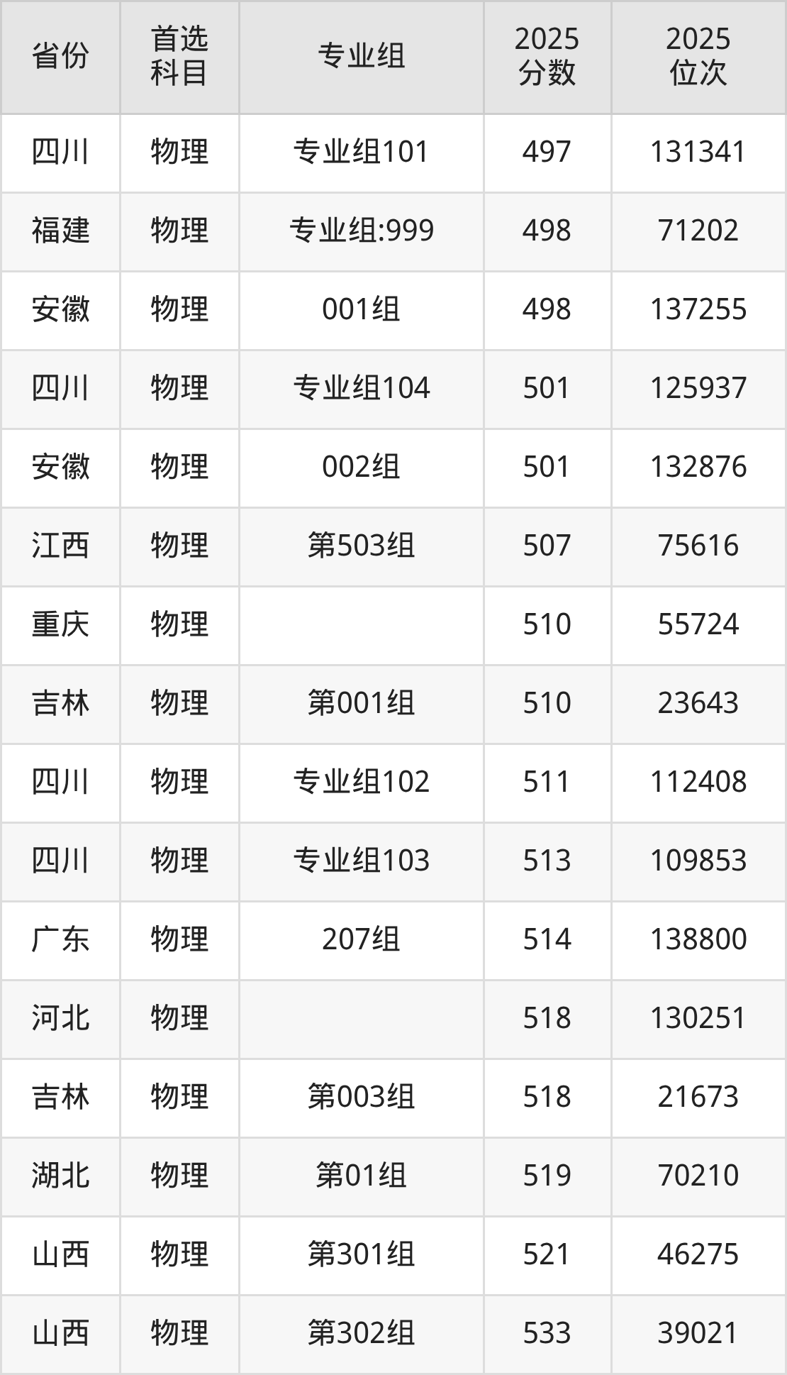 物理类最低分对应地区为黑龙江(第002组),录取位次为83851,超本科线4分;最高分对应地区为山西(第304组),录取位次为21967,超本科线148分。