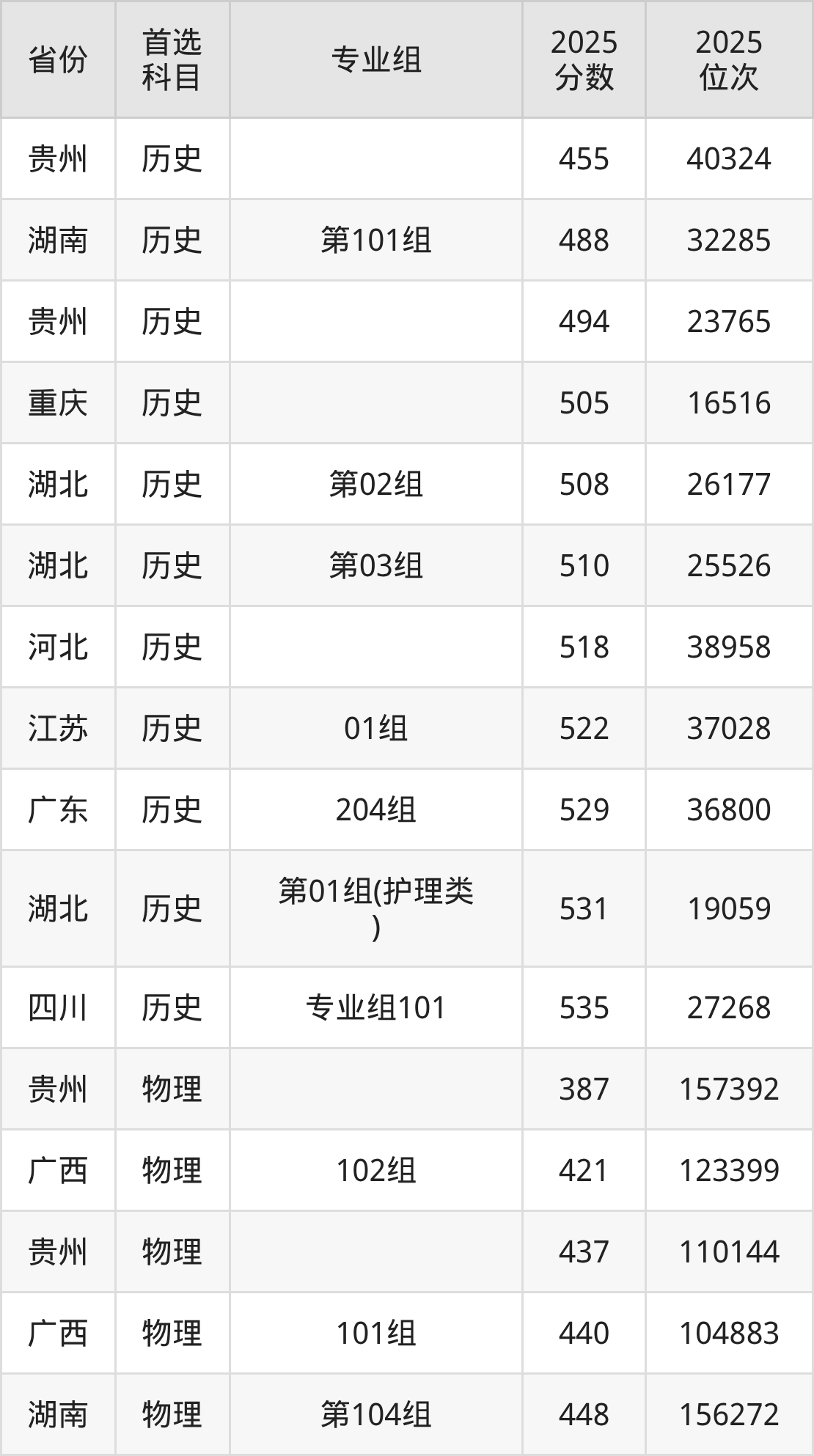 贵阳康养职业大学在贵州省近三年(2023年-2025年)录取情况如下: