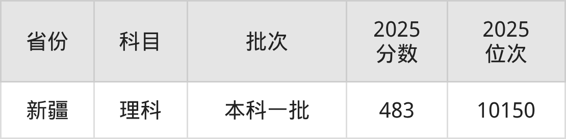 理科最低分对应地区为新疆,录取位次为10150,超一本线62分。
