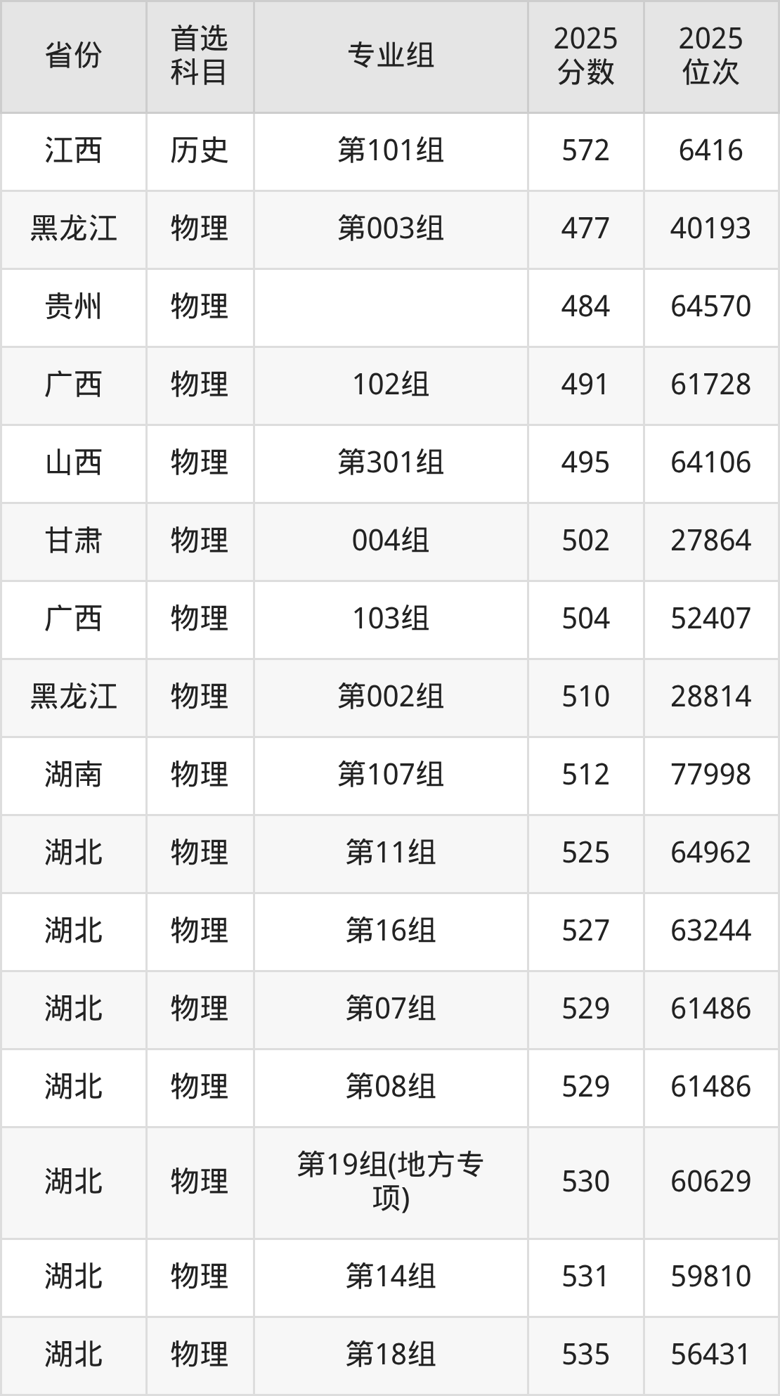 为了方便各地区考生们查看江汉大学的录取情况,本文也整理出2025年江汉大学在全国各省的录取分数线,供参考。