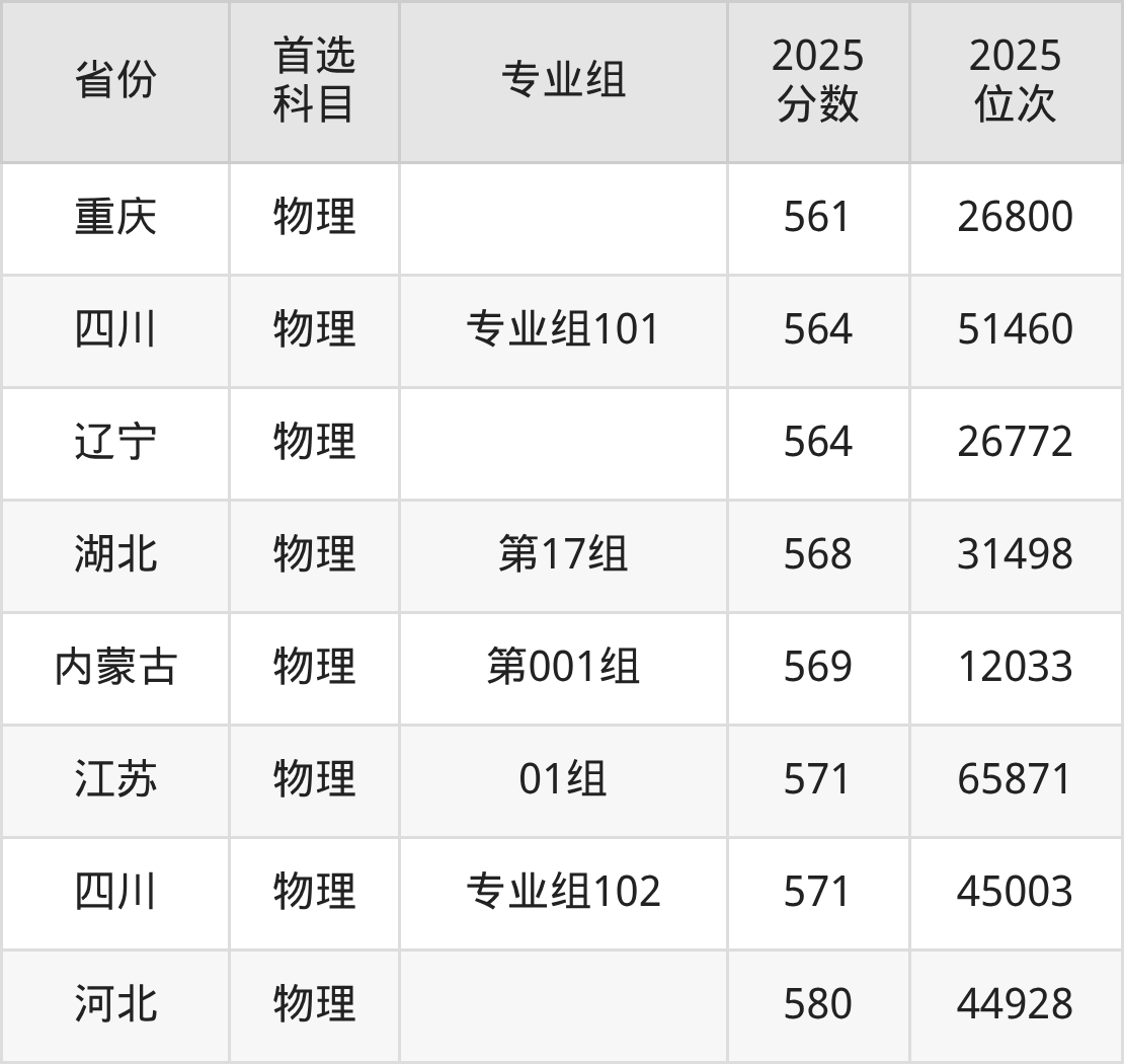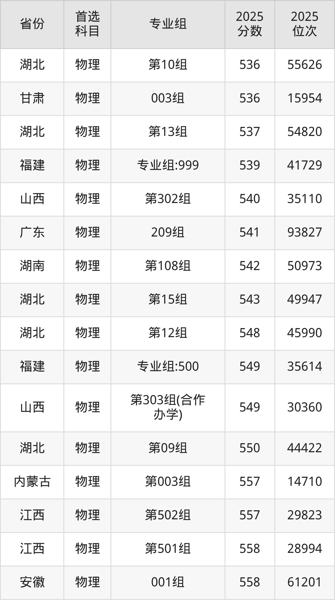 物理类:第05组539分、57256名,第06组546分、51834名,第07组548分、50295名,第08组544分、53258名,第09组555分、45051名,第10组539分、57256名,第11组549分、49538名,第12组534分、61292名,第13组580分、28232名,第14组(地方专项)536分、59716名;