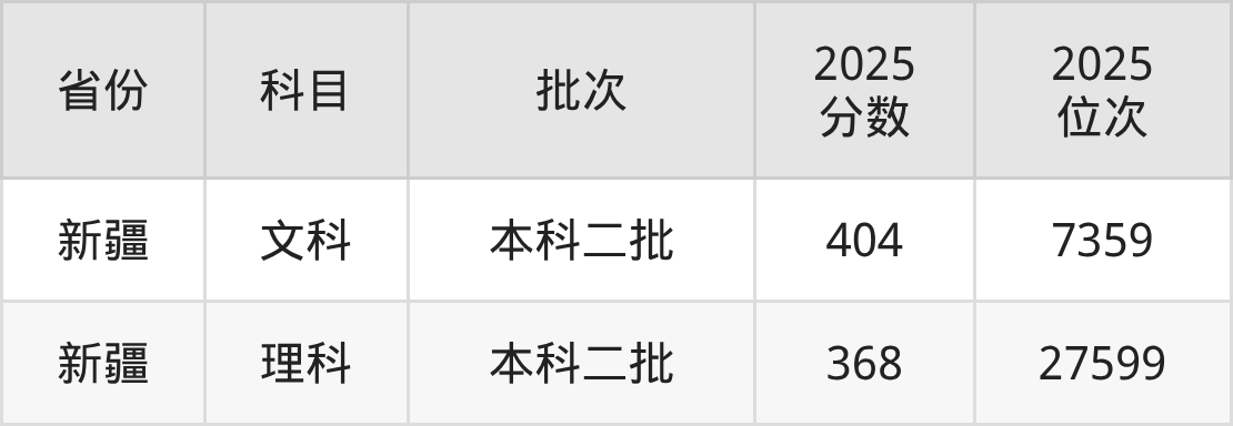 文科最低分对应地区为新疆,录取位次为7359,超二本线74分。