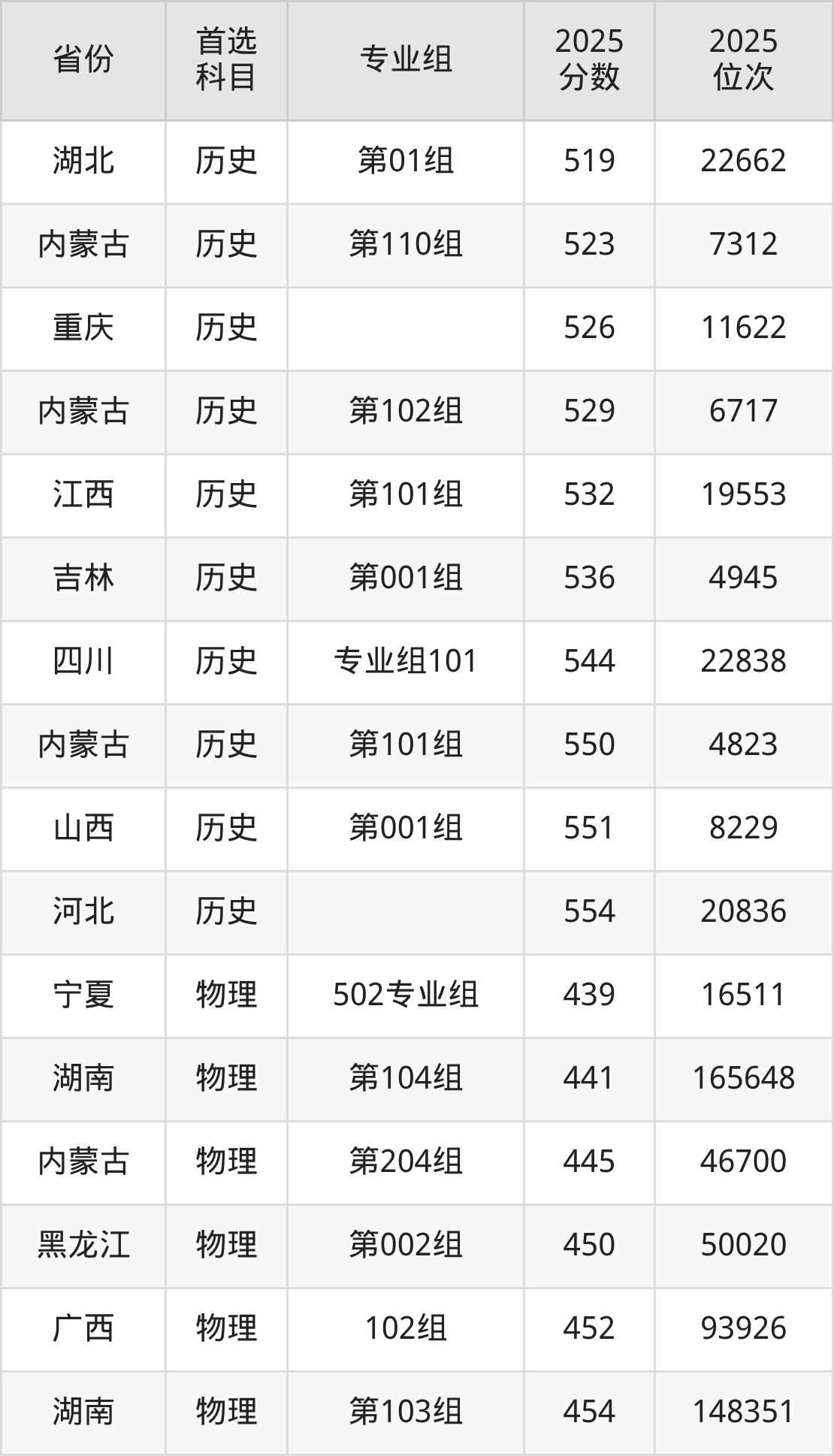 为了方便各地区考生们查看内蒙古财经大学的录取情况,本文也整理出2025年内蒙古财经大学在全国各省的录取分数线,供参考。