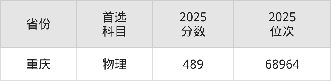物理类最低分对应地区为重庆,录取位次为68964,超本科线64分。
