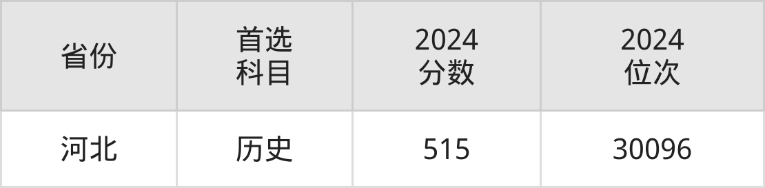 历史类最低分对应地区为河北,录取位次为30096,超本科线66分。