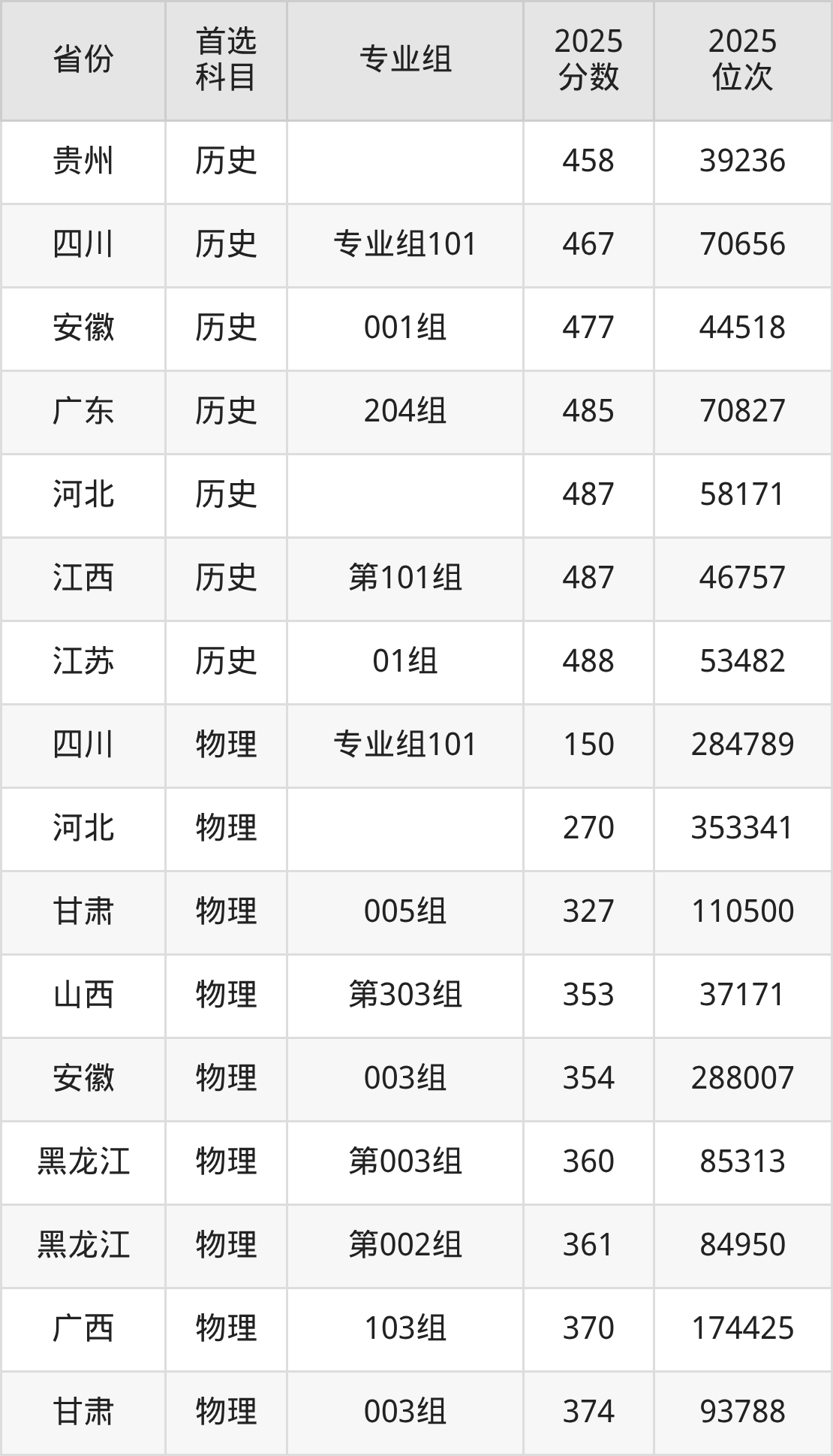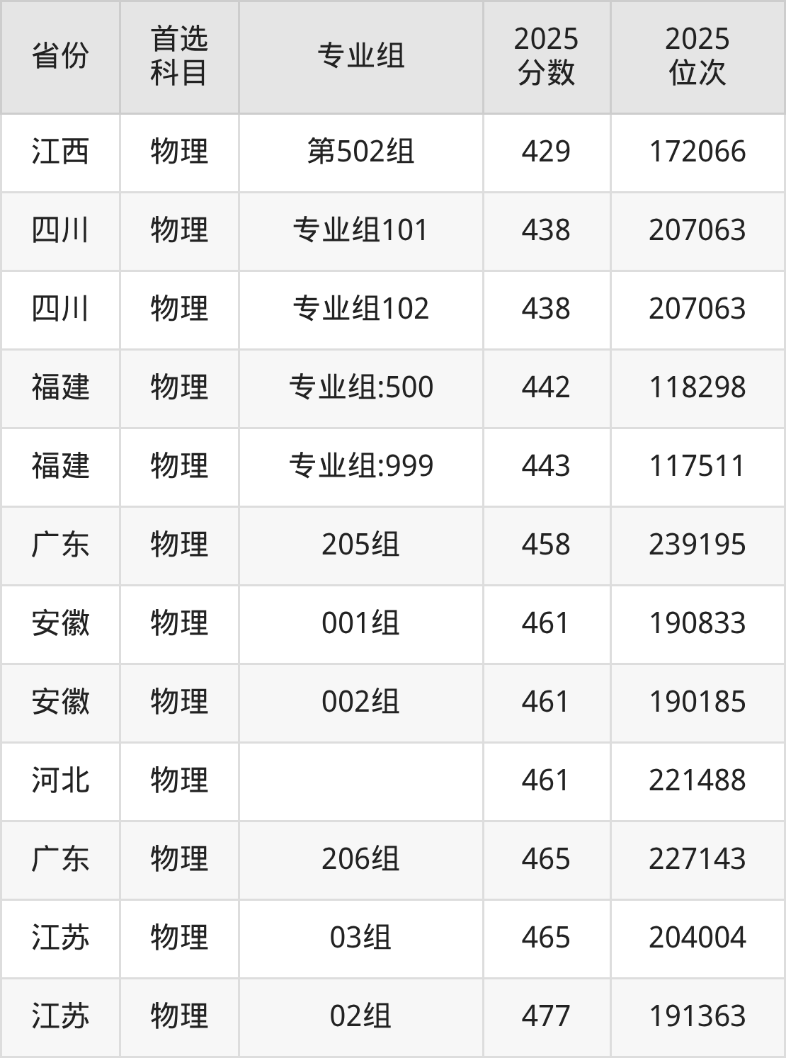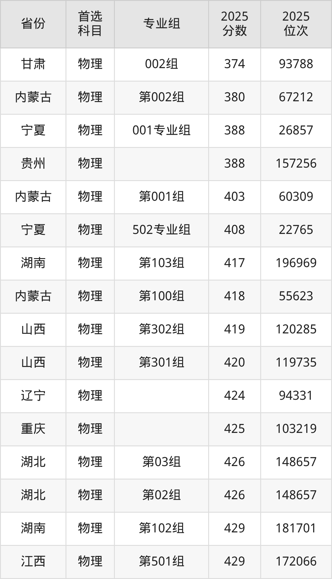 物理类:第02组426分、148657名,第03组426分、148657名;