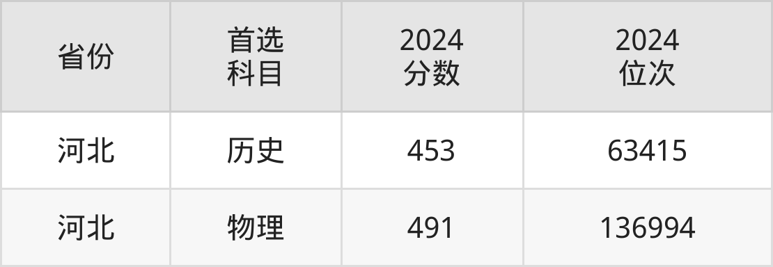 历史类最低分对应地区为河北,录取位次为63415,超本科线4分。