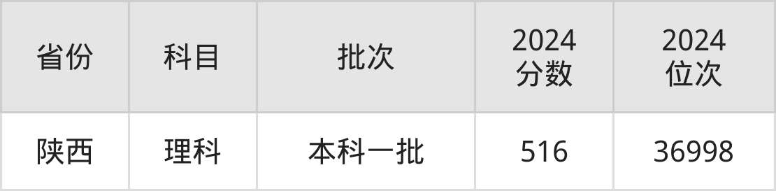 理科最低分对应地区为陕西,录取位次为36998,超一本线41分。