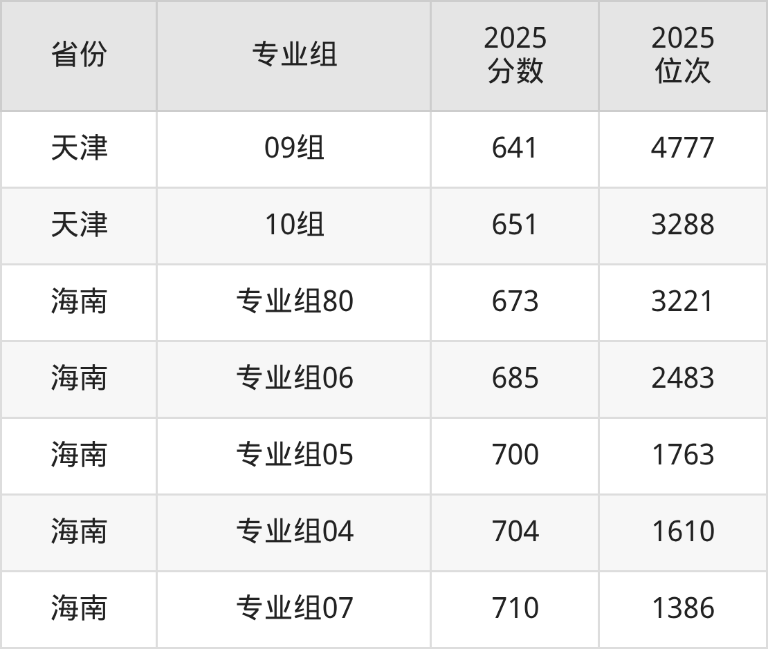 最低分对应地区为上海(05组(中外合作)),录取位次为9779,超本科线151分;最高分对应地区为海南(专业组07),录取位次为1386。