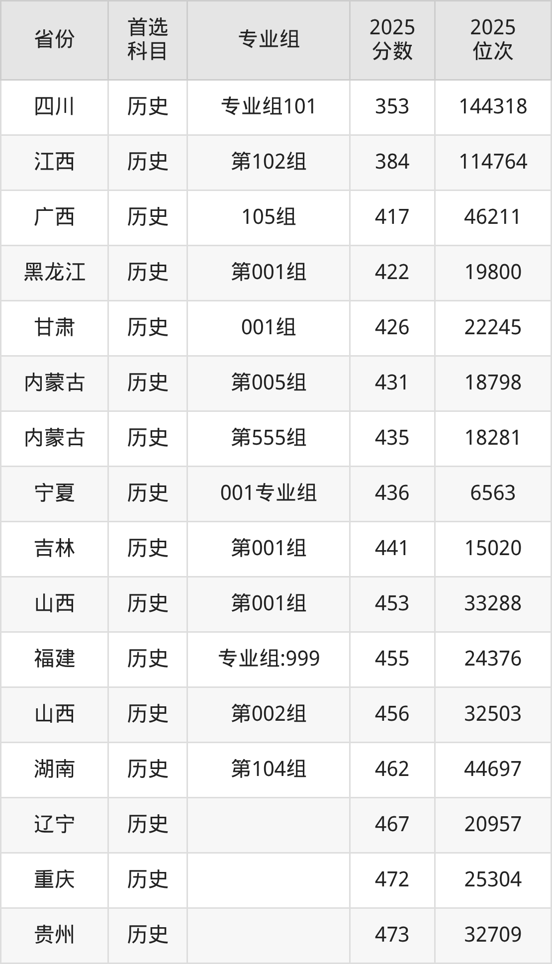 历史类:第101组499分、38543名,第102组384分、114764名,第103组332分、152898名;