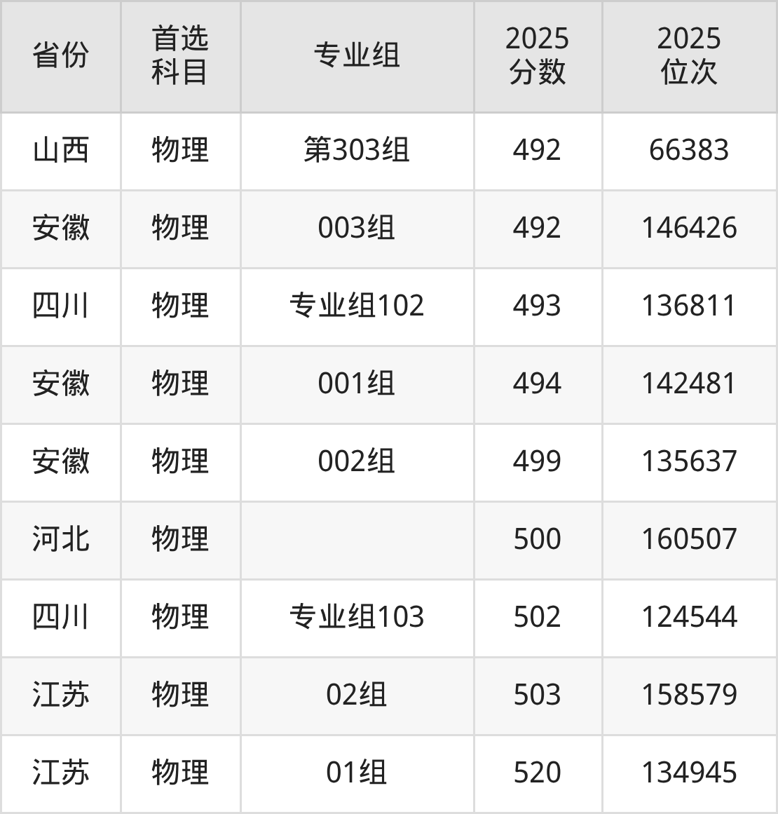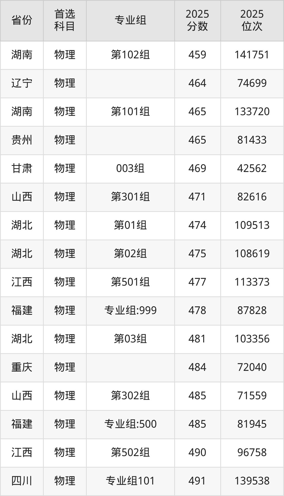 物理类:483分、149921名;