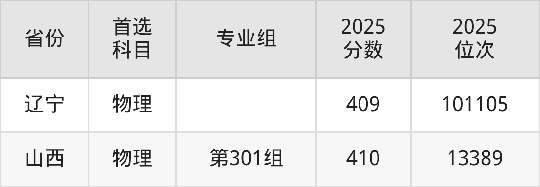物理类最低分对应地区为广西(102组),录取位次为234048,超专科线95分;最高分对应地区为山西(第301组),录取位次为13389。