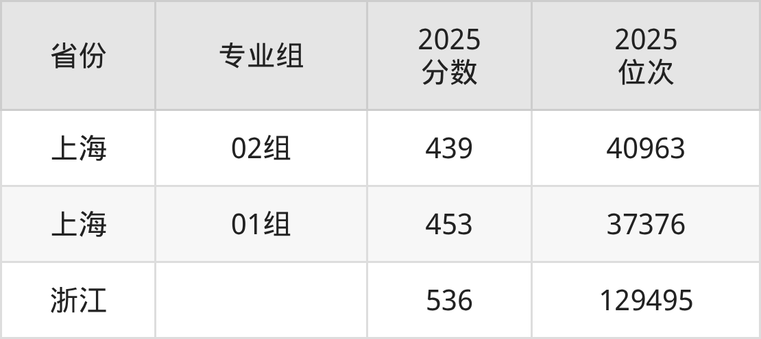 最低分对应地区为上海(02组),录取位次为40963,超本科线37分;最高分对应地区为浙江,录取位次为129495,超一段线56分。