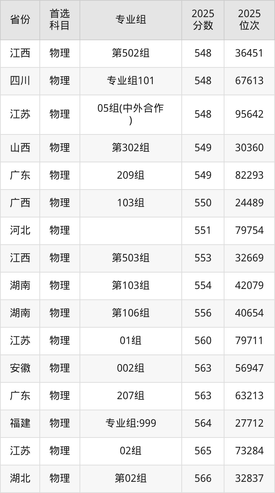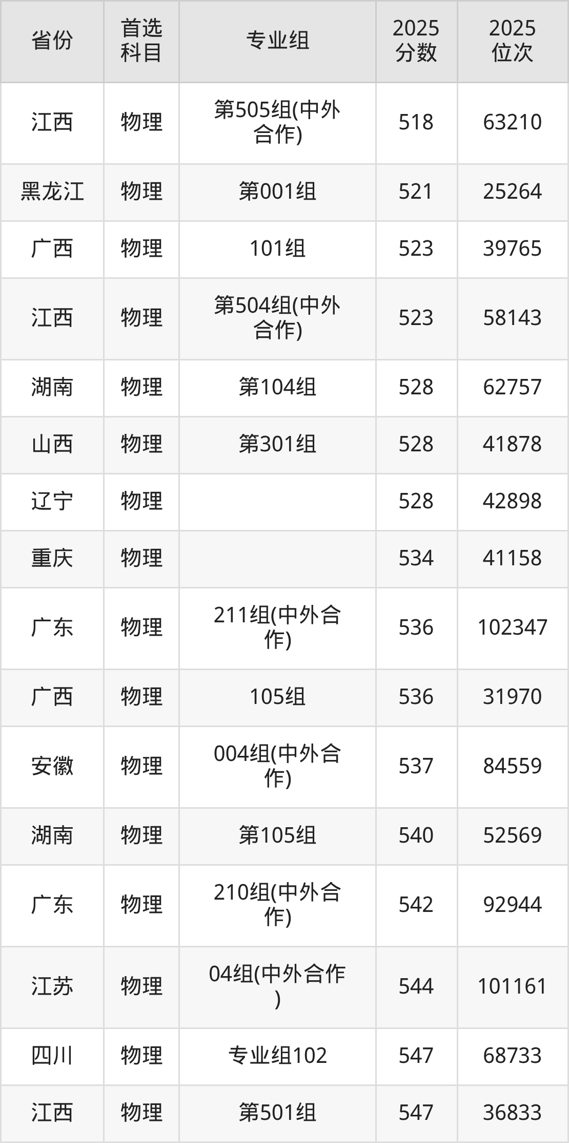 物理类最低分对应地区为宁夏(001专业组),录取位次为13875,超本科B81分;最高分对应地区为安徽(003组),录取位次为30869,超本科线133分。